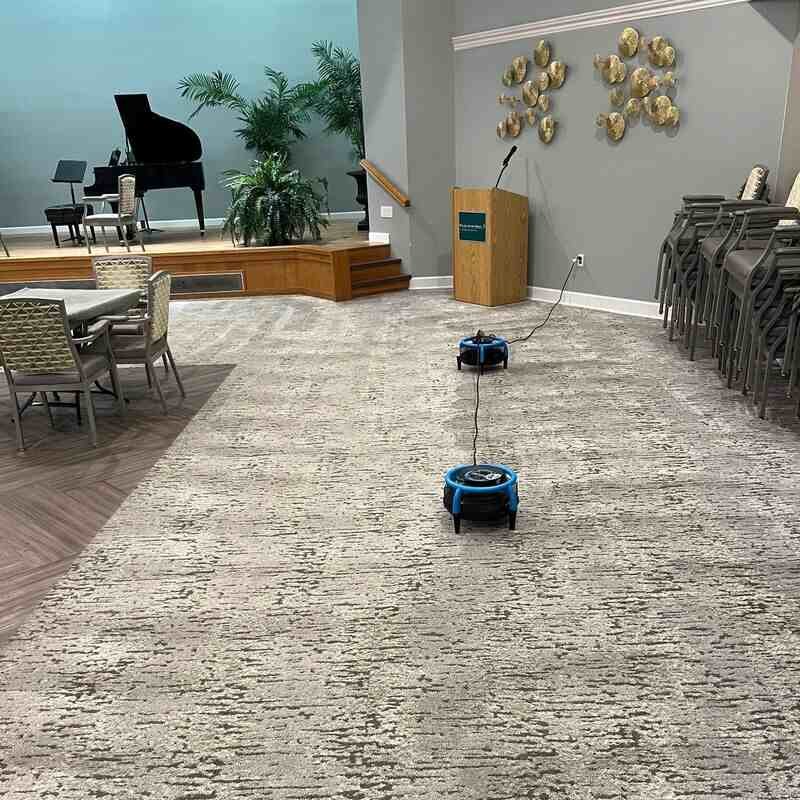 We install specialized fans/air-movers on carpets to facilitate movement of air. This helps to remove moisture and reduce carpet drying times